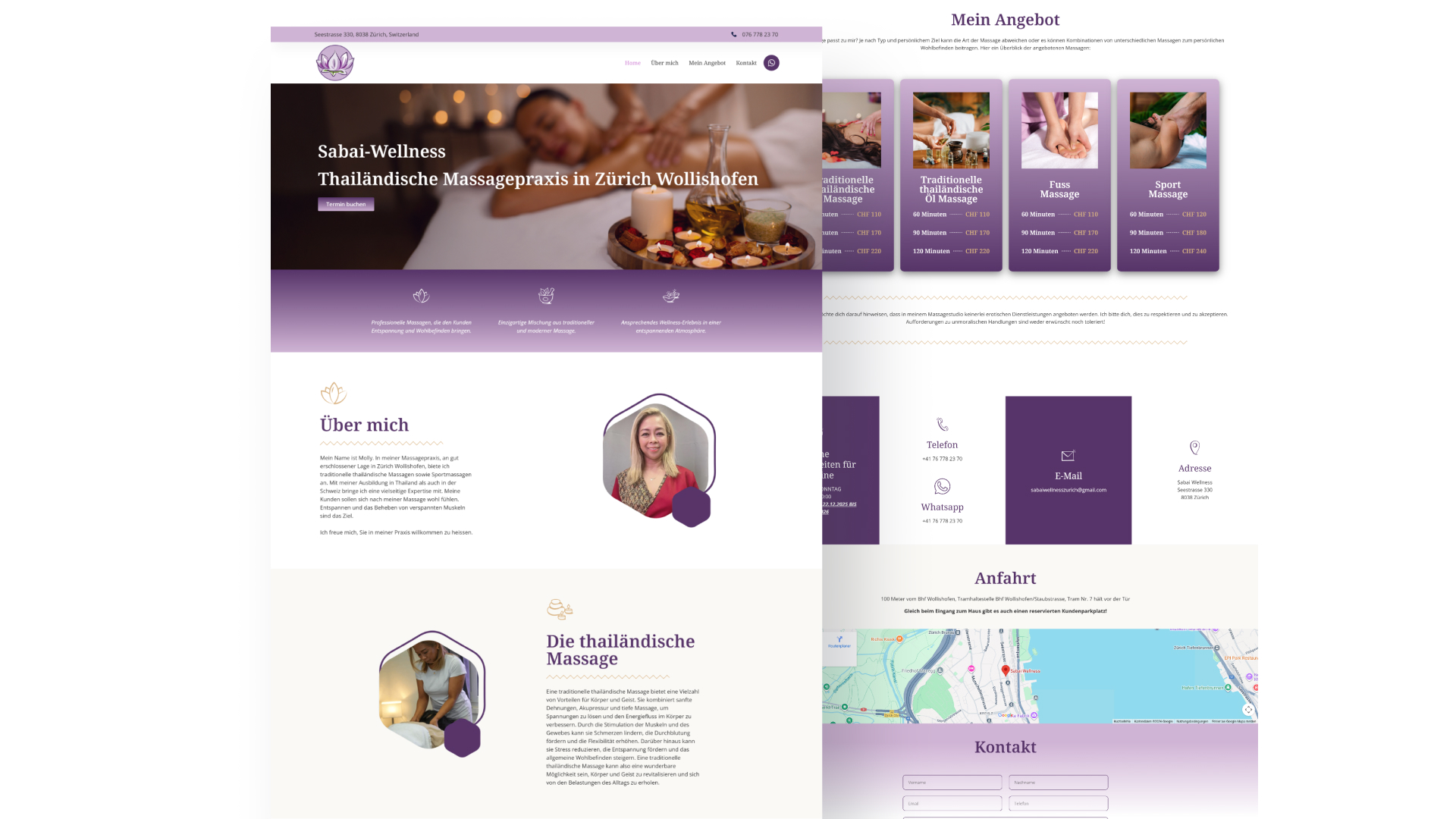 Typography, spacing, and layout were carefully refined to create a sense of calm and professionalism. The result is a website that communicates quality, builds trust, and supports Sabai Wellness as a reliable provider of professional Thai massage and wellness services.