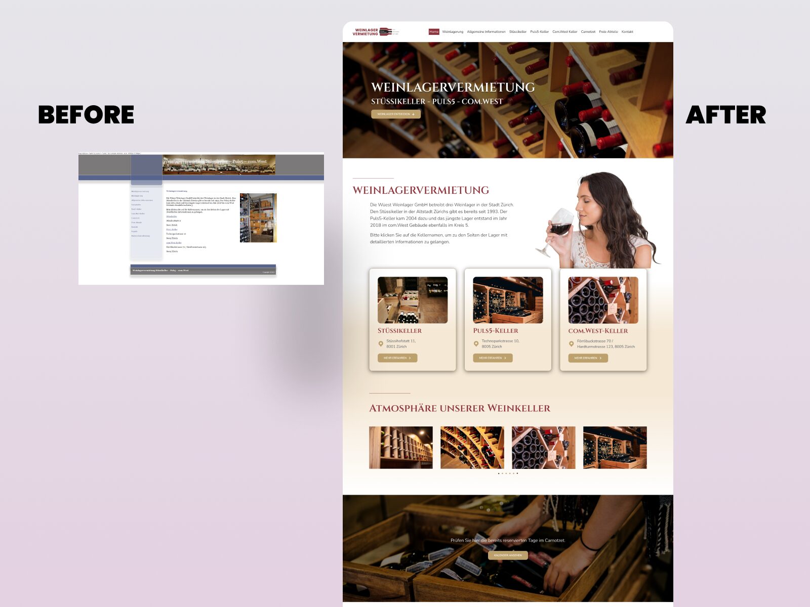 This wine storage website redesign emphasizes structured content, refined typography, and a clear visual hierarchy to reflect the high-quality nature of professional wine storage. Special attention was paid to usability and accessibility, ensuring visitors can quickly understand the offer and easily make contact.